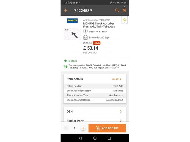 Brand new Monroe shock absorbers , wrong size