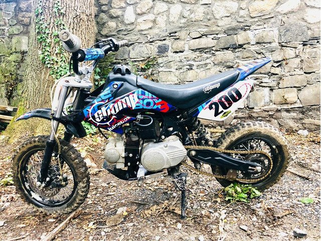 Kids motorcycle. Good condition. Selling with helmet, boots size 34 clothes size 12-14 neck brace, upper body protection.