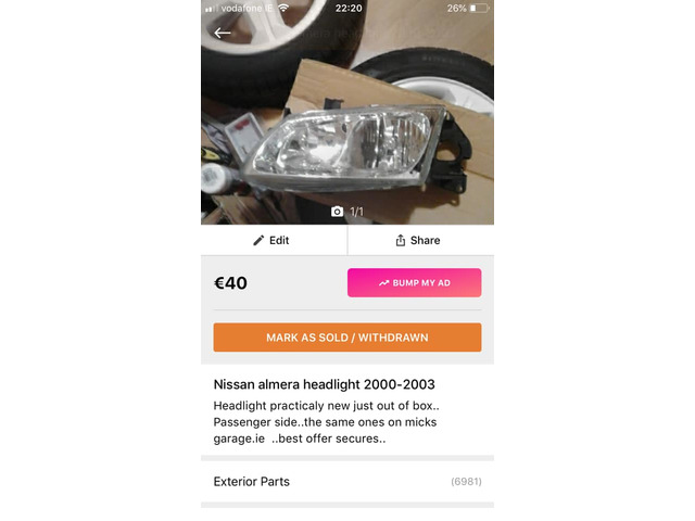 Nissan Almere 2000-2003 passenger side headlight