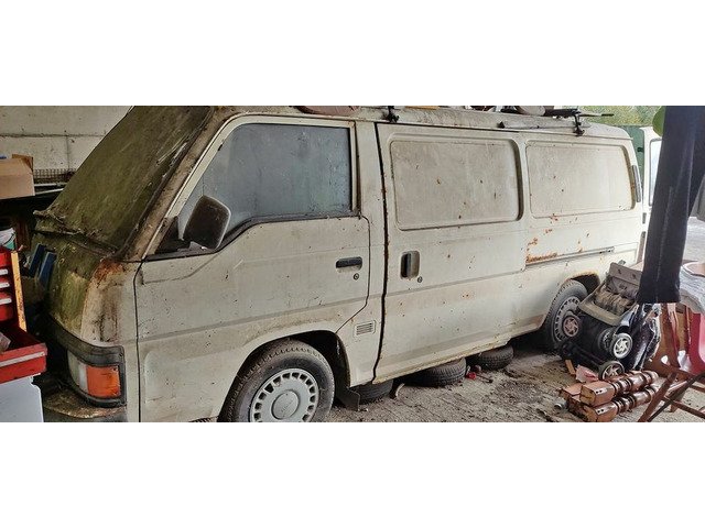 Diesel vintage Nissan Urvan van, prime for restoration.