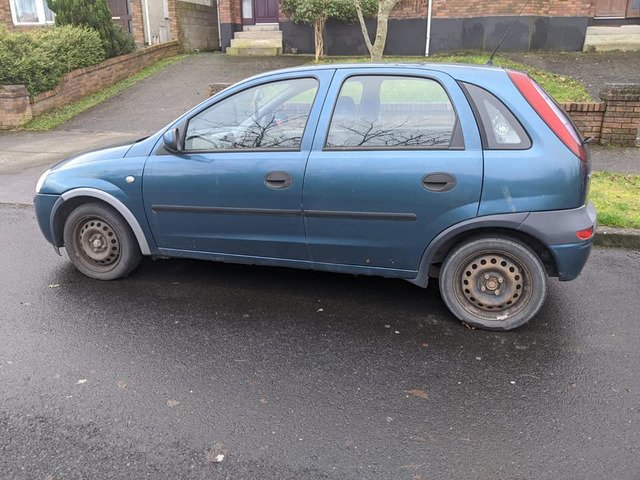 Opel Corsa blue 2001, the body is well preserved but has some internal issues, best for parts or scraping. Open to offers. manual transmission.