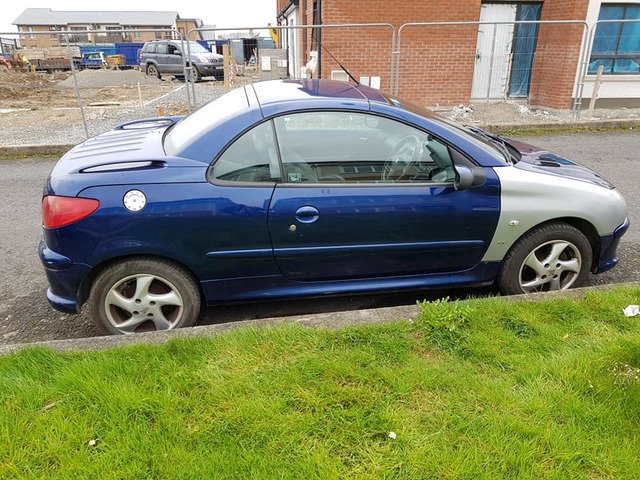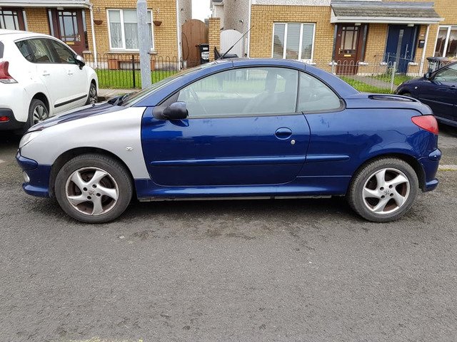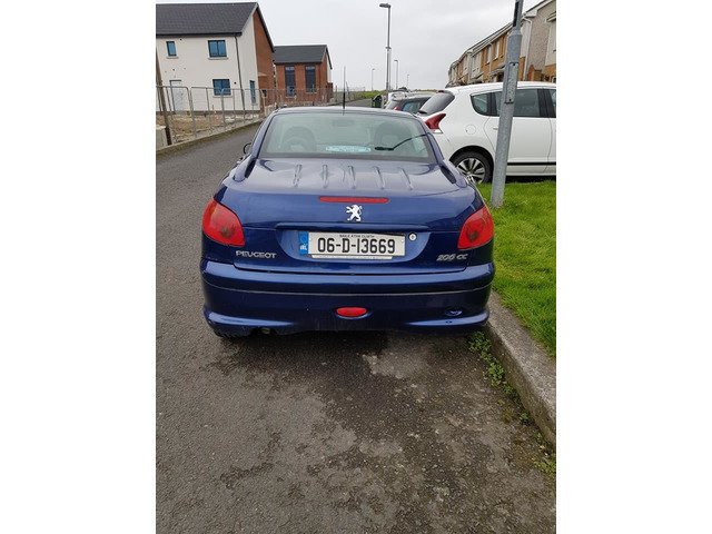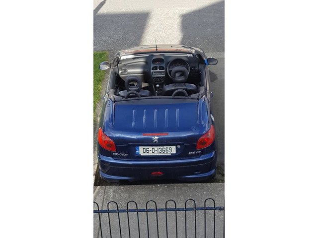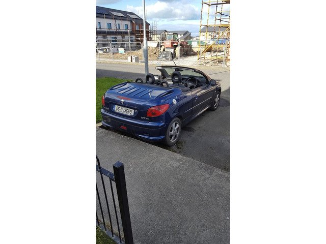 Peugeot 206cc convertible. Roof working perfectly. 90 genuine k miles. NCT until January 19th. Serviced & new brakes all round. New battery. CD player, Electric mirrors and windows. Never crashed. I replaced the 2 front wings because the old ones wern't in greak nick. All the car needs is the wings sprayed. Starts & stops 100%. €720. No time wasters please.