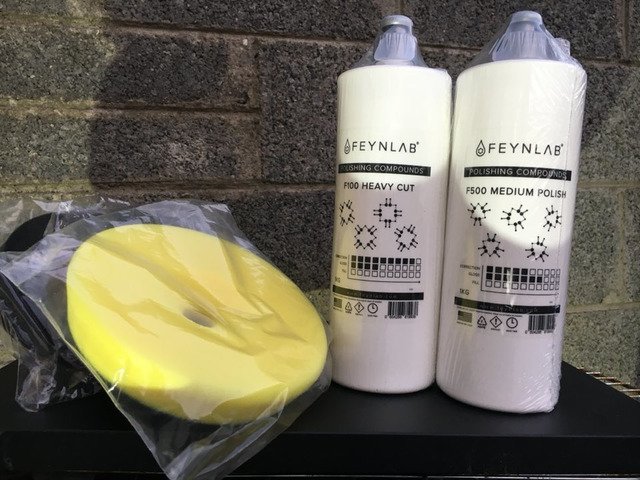 Professional polishing kit comes with heavy & medium Feynlab polishes three pads bag two LE micro fibre clothes detailing brush & rainX special price for Black Friday €350 for T2000 the bigger brother T5000 €500 call 0871512263 kits are brand new
