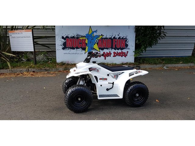 Top of the range kids quad . Full range on muckandfun.com with specks videos prices and videos lots to chose from only 375 euro for 50 cc quads . Also buggies and dirt bikes . Full warranty.