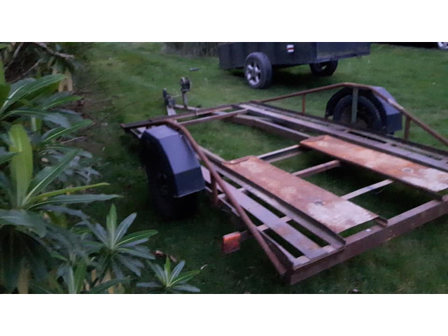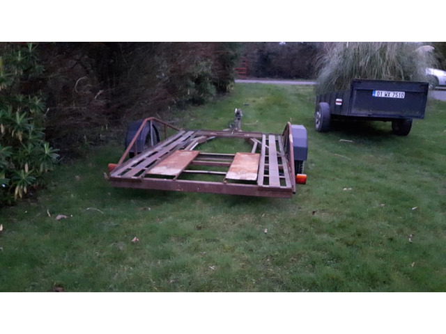 Have had trailer for last 5 years to tow my hotrods around never gave any bother at all . Lovely trailer to tow . Very light . Easy too reverse with etc. Winch on trailer . Three orange led lights on either side of the trailer . And new lights on rear . New ramps and bars on side made recently. New mudgaurds fitted also . Trailer could do with been painted is all it needs will paint myself if have time . Fits corsa , micra , starlet , civic , saxo etc pm me for more info