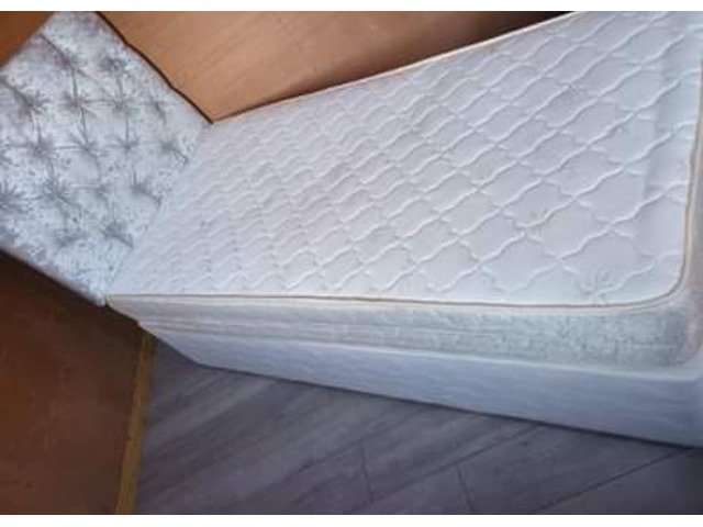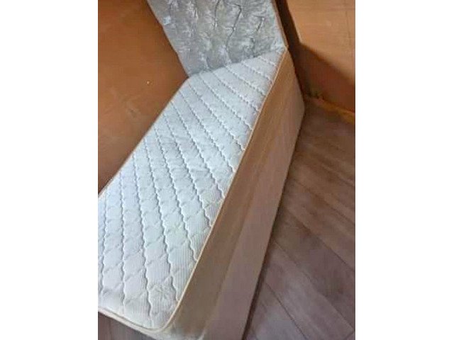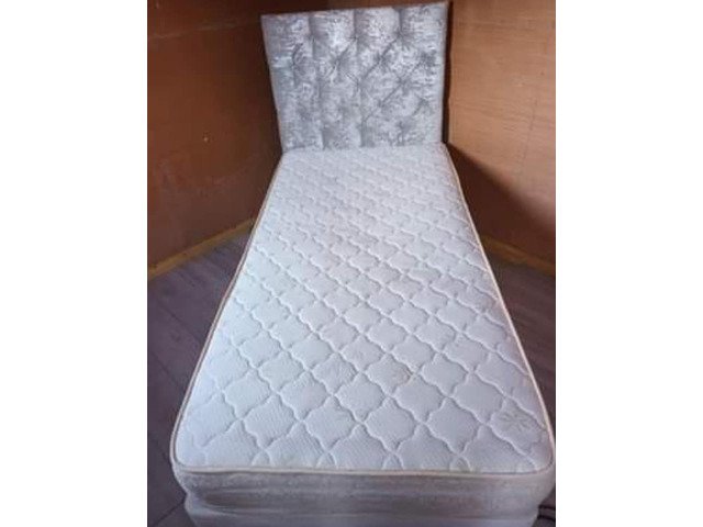 Single bed with velvet headbord and mattress in mint condition