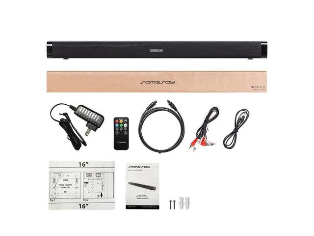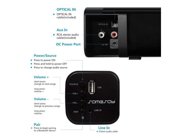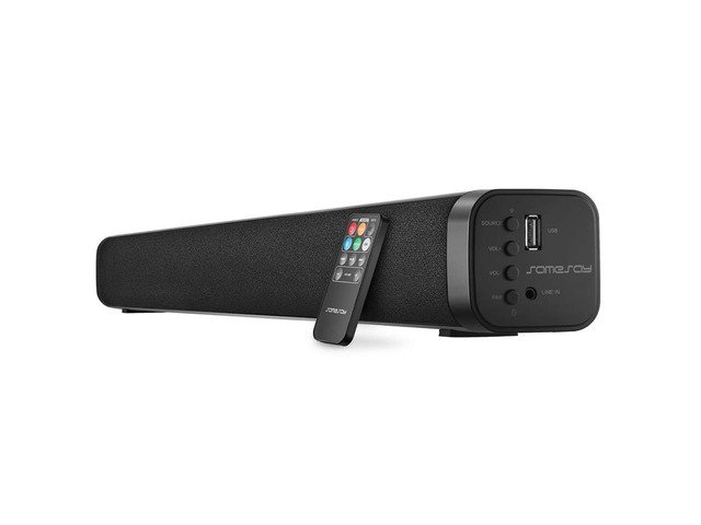 Samesay sound bar is so versatile and convenient. Features 2.0 Channel speakers deliver clear excellent stereo loud sound. You can place it on the TV cabinet or a table wherever you want. Enjoy movies, music, TV shows, news and gaming, The family sit together and enjoy fantastic home theater surround sound experience.