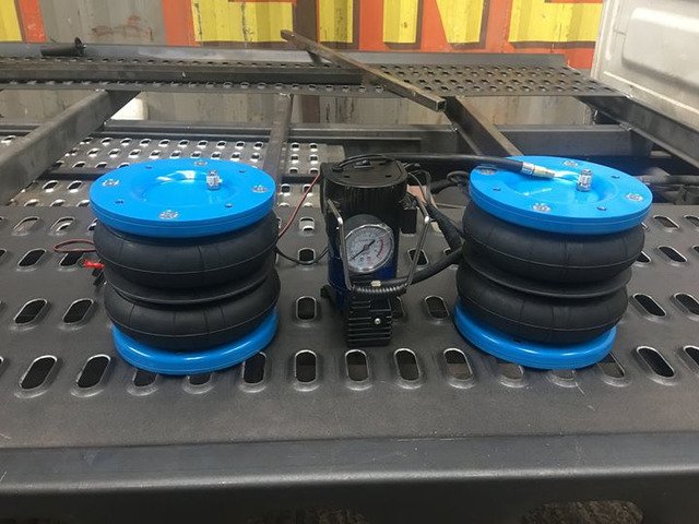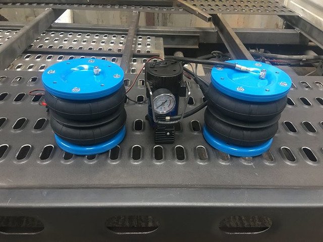 OUR KIT COMES WITH PRESSURE GAUGE / CONTROL PANEL AND IT IS VERY EASY TO OPERATE BY SIMPLY PRESSING A BUTTON TO INFLATE THE BELLOWS.( OPTION WITH 12 V COMPRESSOR )