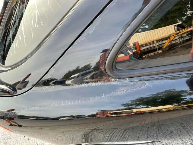 Rear drivers side quarter panel has lacquer peel