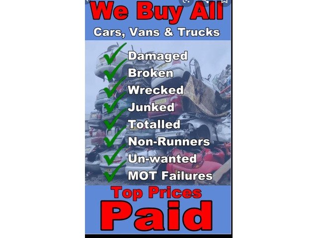 We buy scrap cars Top prices paid for all Mot failures Cars Vans Lorrys Busses All type of