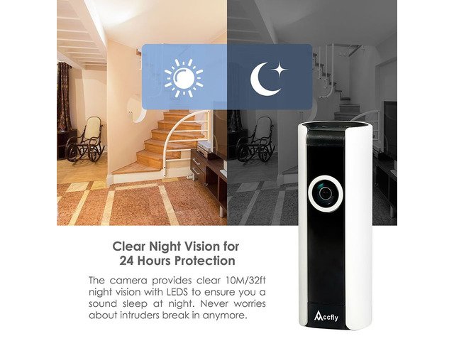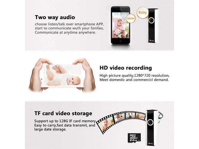 Mini IP Camera with exceptional video quality and audio.185-Degree Wide angle view allows you monitoring your whole house with clear HD video.Built-in microphone and speaker can two way audio directly to your smartphone,as baby monitor. anywhere at home or in the office, you can keep a watchful eye on your home or business at anytime and anywhere.