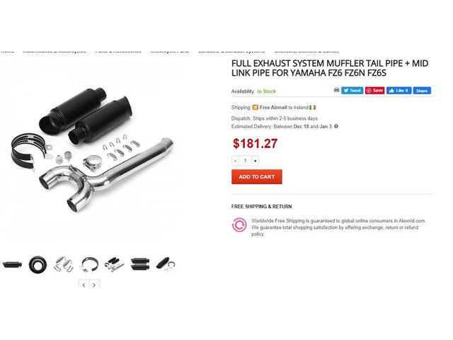 YAMAHA FZ6 FULL EXHAUST SYSTEM MUFFLER TAIL PIPE 2005 and above.