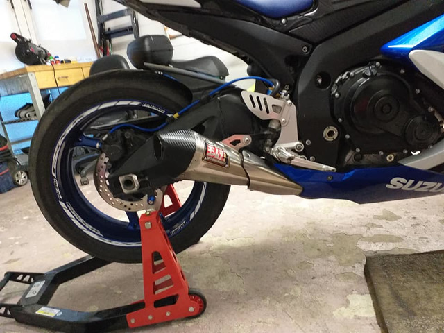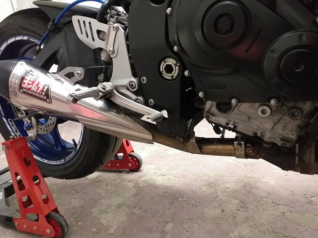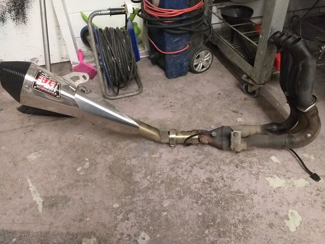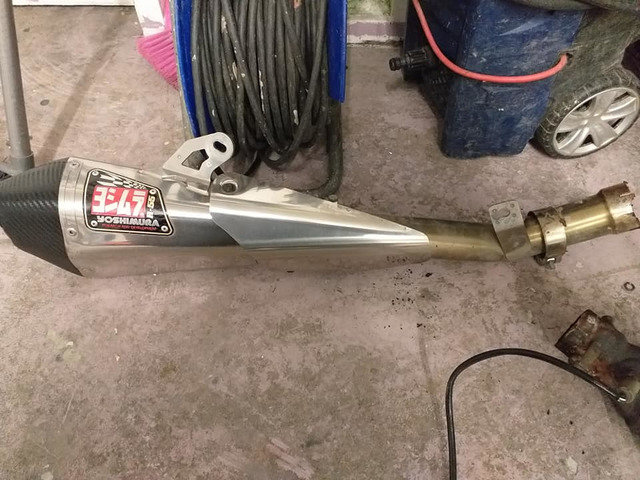 Yoshi r55 end can link pipe mounting bracket db killer with orignal headers came of 09 but will fit 06/10