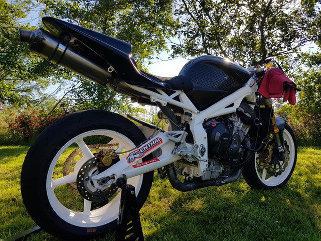 Engine is out of a 09 675 low mileage and made 124hp. It's done a trackday and one masters.