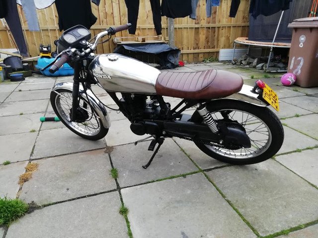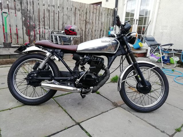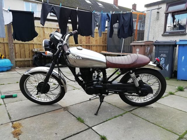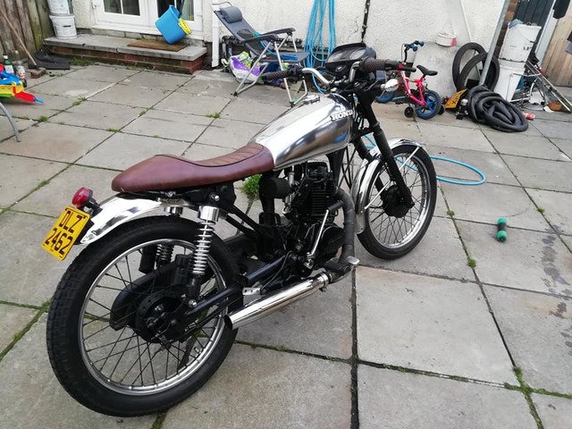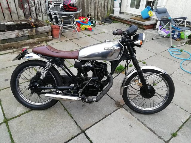 Engine just rebuilt 750 miles ago. New Cylinder new Piston and rings. New valves head ported and polished. New bigger carb. Original Cg125 mudguards tank off a 1977 bike stripped back and polished.