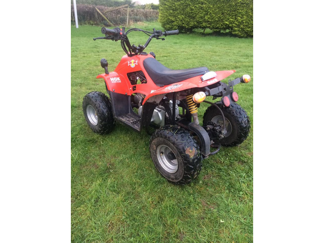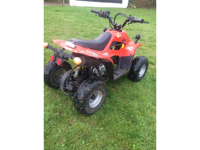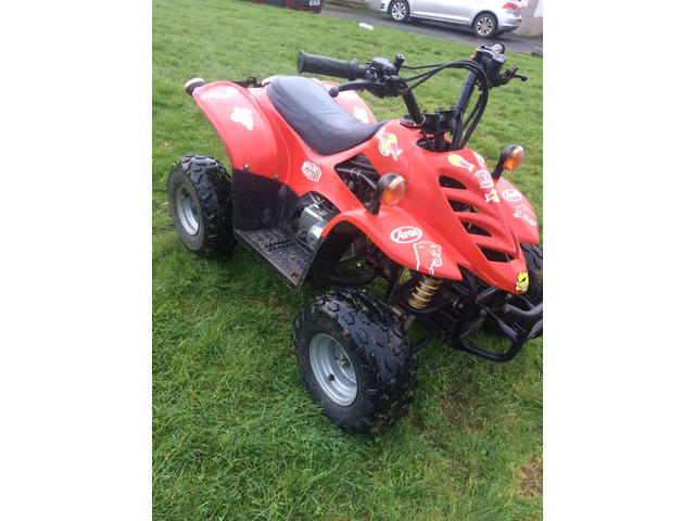 Good going 100cc quad with electric ignition switch and brake light and indicators starts very easy fast wee quad well looked after selling cheap first comes buys pm for more details no time wasters