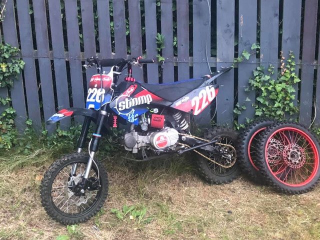 140 stomp new chain /cdibox set of big wheels thay need bearings will px or swap 65cc or big bike Money your way