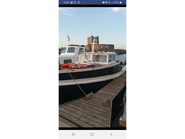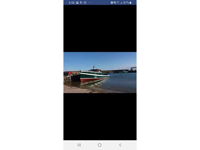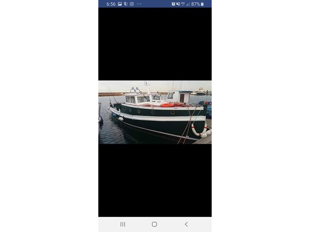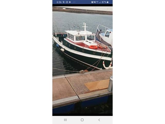 1937 35ft clinker built beauty fishing boat outstanding and smooth running diesel in-board engine at a cruising speed of 10 knots a good spacious deck with plenty of room for fishing also equipped with fish finder depth finder ship to shore nav lights and with the low voltage upgraded led spots to front and rear of the boat gives u an around view for night cruising and fishing. To start this season of iv fitted a brand new solar panel so the batteries are fully charged and ready for the last min mind change and fancy a boat trip out also had the full electrics replace as well as the dash consisting of temp gauge oil pressure gauge volt meter fuel gauge light switch panel for both inside and outside the boat. The engine has just under gone a full service all filter and oil changes and is fully marinised bra d new alternator and starter gearbox oil drained and changed replaced all bildge pumps and fully wired for shore power. The gallery has been fitted out with comprising sink and cooke