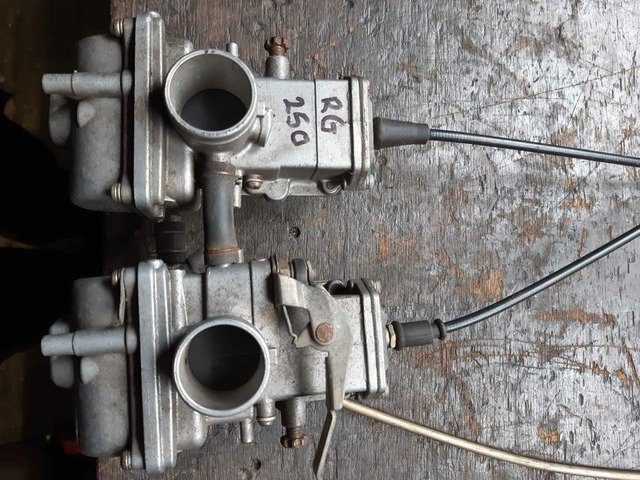 Set off carbs off a 250 Suzuki RG Gamma. In good useable condition all there just need cleaned up or vapour blasted.