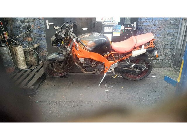 1994 suzuki rf600 for parts or repair. Engine starts first time every time. All fairings are here for the bike. The bike was stripped to be repainted and never put back on. Rear calipers was removed as it is seized. Bike is for parts or repair. It's pretty rough but can be saved or would be a good parts bike