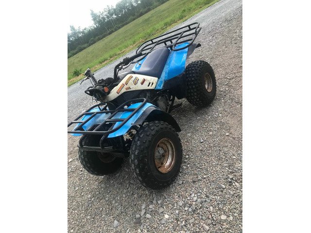 Yamaha yfm 200 runs but selling for parts or repair quad runs and drives okay on the bump but needs work so don’t text asking stupid questions engine is fine as runs and drives just the frame would need a few bits and prices no time for it need it gone comes with a spare seat and a spare engine for parts and a box of bolts and stuff off the quad no time wasters if your interested come look at the quad price is £695 Ono no sensible offers refused Quick sale
