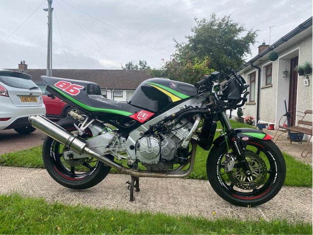 Great bike just built and never seen the track, lots of upgrades, firestorm forks with ktec springs, fireblade callipers and master cylinder, braided brake lines all round, stainless full exhaust system, new race chain and sprockets, good super corsa tyres, fully serviced and carbs just been cleaned and set up, new battery, race rear sets etc