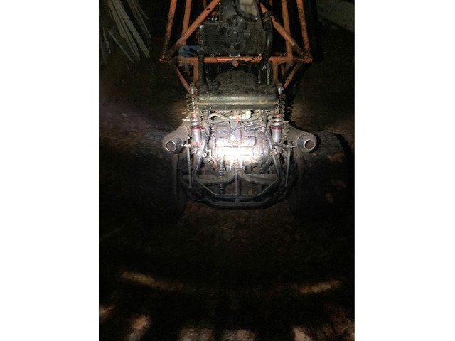 In this buggy.