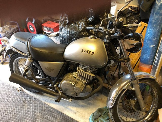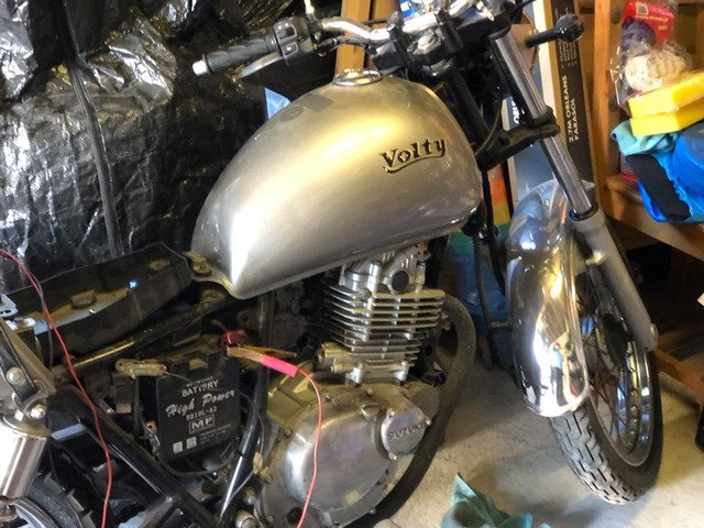 Japanese import Suzuki tu 250 volty great see retro styled bike saddle splits in 2 to allow for back touring box spoked wheels excellent tyres good chrome a retro styles bike comes with a single saddlebag that’s how it’s done in Japan needs registered here a ageing letter required with mot to register for the road nice looking retro bike which are big money in dealerships in England would swop for classic car trike with Cagiva River 600 .