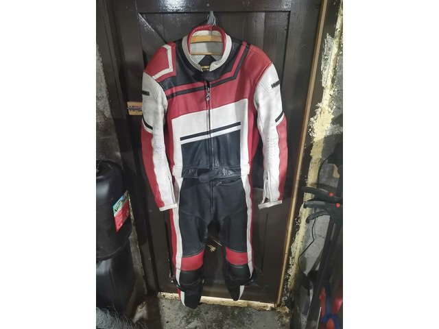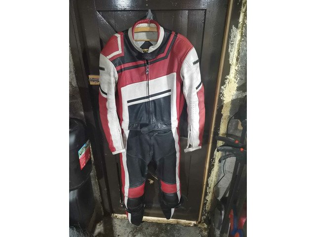 2 piece leathers with knee sliders all zips and fasteners working size 42 no rips or tears
