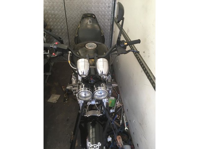 The fairings where took off and tank painted not very well black with a gold glitter