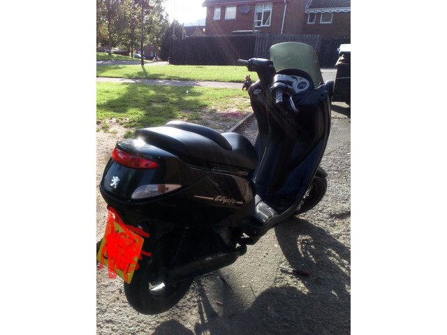 ... Peugeot eylseo 125 cc... 2002, 3498.0 miles... Log book and keys here, good tyres, running slow as needs carb, jets cleaned.... Brand new battery and spark plug last wk,,, just needs a good run.... No MOT....... Still starts and drives..