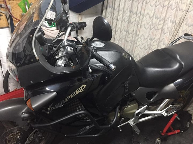 Honda varadero 1000, 02 model but registered new 2004 35600 miles rides perfectly comes with leather tank bag,crash bars and led spot lamps good condition for a 15 year old bike.pm me any questions