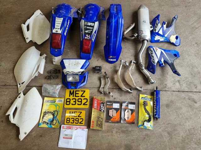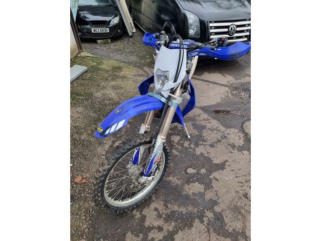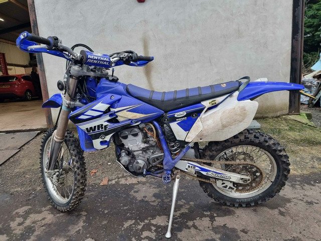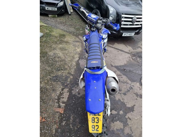 2005 Yamaha WR250F. Recent full service, Rear shock serviced Sept 2021 by Motoshox, new chain fitted, new front fork seals fitted,uprated LED headlight, uprated LED rear brake and tail, aluminium sump guard, Gel seat upgrade FMF exhaust. Apico foot brake and gear selector. Electric and kick start. Road registered with V5 present. The wee bike starts on the button plenty of spares included. All the original parts and plastics are included. I bought this to start enduro riding a year ago great forgiving bike for a starter/novice rider. Only selling due to moving on to a more modern 2 stroke.