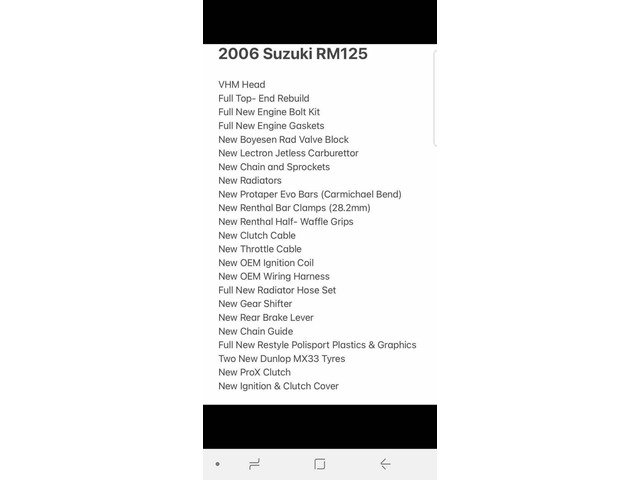 2006 rm125 loads of extras just after full refurb new restyke plastics ,tyres chain sprockets v force reed block fmf pipe lectron carb pro taper bars to much to list starts first kick for or cold may of for 250 with money your way no time wasters or pen pals messaging for a chat £2650
