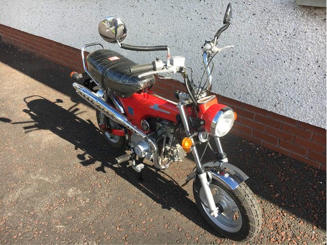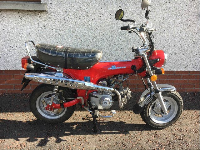 2007 Easy Rider DX90, Honda Dax/St70 Monkey bike copy. 90cc manual with only 170miles. Has done nothing. Great going, comfortable wee bike. I bought this to modify but I’ve since found an old incomplete Dax which I’ll use instead. Mot’d to the end of October. £1100