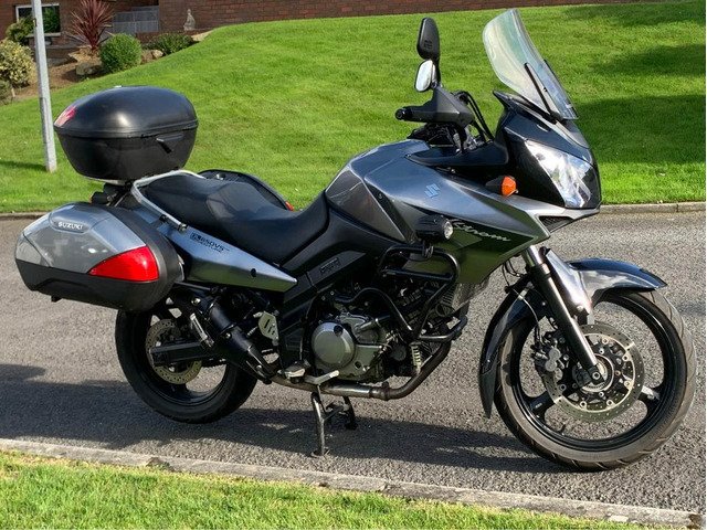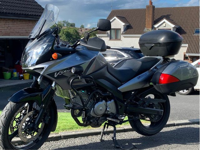2008 Suzuki V Strom GT edition ABS in metallic grey with full Suzuki touring luggage, Auxiliary lights & heated grips, hand guards, Tool tube, chrome radiator cover and oil cooler guard. New tyres fitted recently. Good overall condition. 24,800 miles which is nothing for these bikes. 8 months MOT. Fully serviced and ready to go. Ideal first adventure bike or winter bike