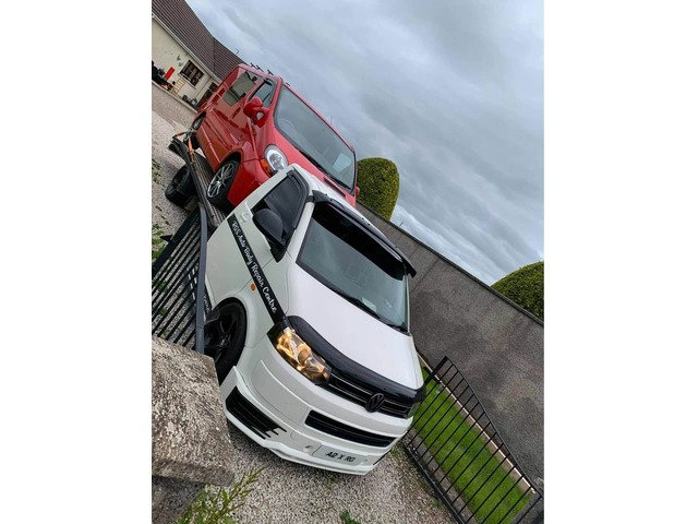 Lowered on coilovers and as pictures show its carry’s cars and vans well very stable on road and under load bed is 16ft long alluminium, timing belt done at 104k no time wasters may px for e36 or vw transporter 07713446698