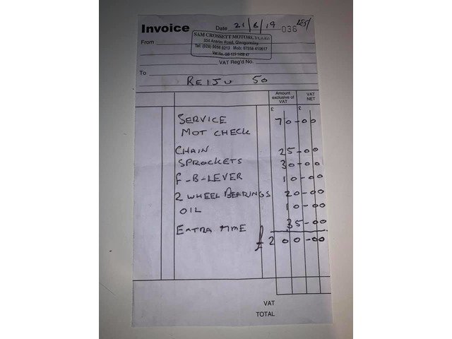- £713 in invoices for the bike