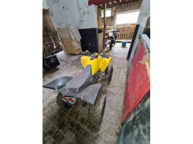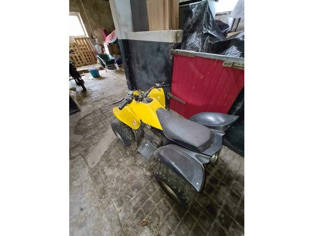 Yellow an black quad kick start is siesed so has to be started with battery blue quad needs cdi box all breaks work on both quads looking £500 for both