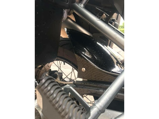 Touratech fork protection carbon fibre rear hugger with engine covers and other small carbon parts, sump guard and head lamp protector.