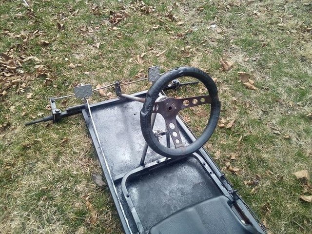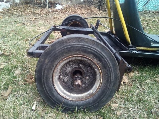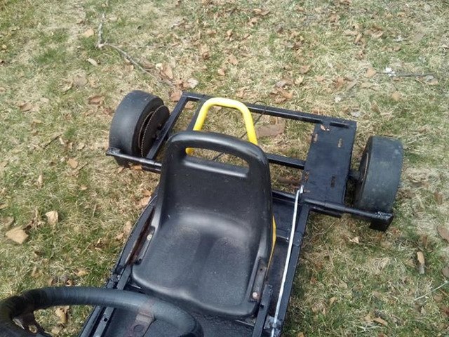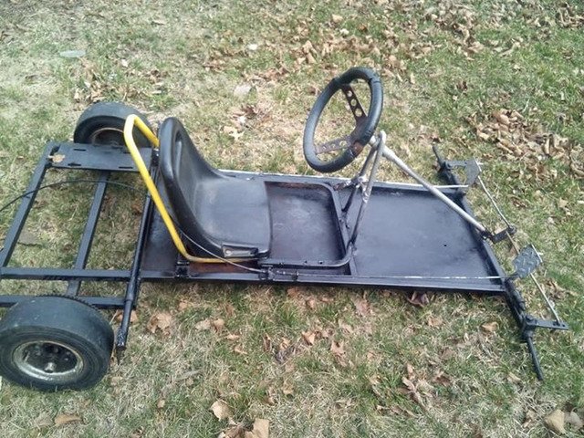 Go-kart frame no engine need new tires gas and brake pedal are there with wires good project to work on $180 or trades cash in front
