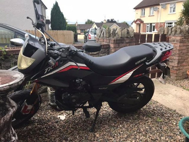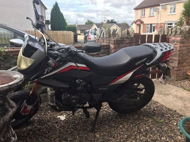 125cc keeway in brilliant condition approximately 1000 k on it very rarely was used would suit someone for first time bike just don’t have the time for it and only sitting around can sell the with helmet and boots and trousers and jacket date of first registration August 2015 not due first mot till August but the we bike is that good it will need nothing if anything the battery might need a charge full log book 2 keys manual and wheel lock . The bike is outside Newry BT34 collection only . PM for price No swaps. Genuine interest’s only