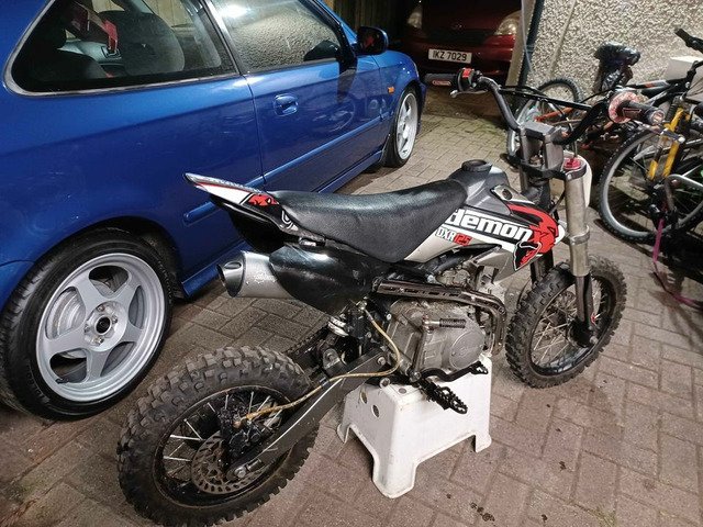 Stomp 125cc, has had a new exhaust recently. The bike has been sitting up for over a year so could do with a service, can be seen running. £295. Located belfast.