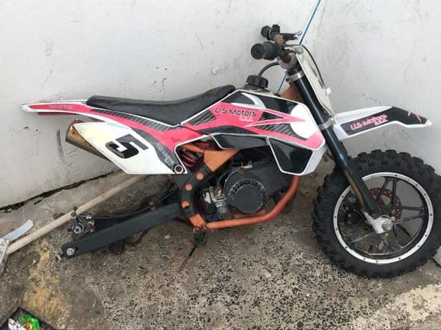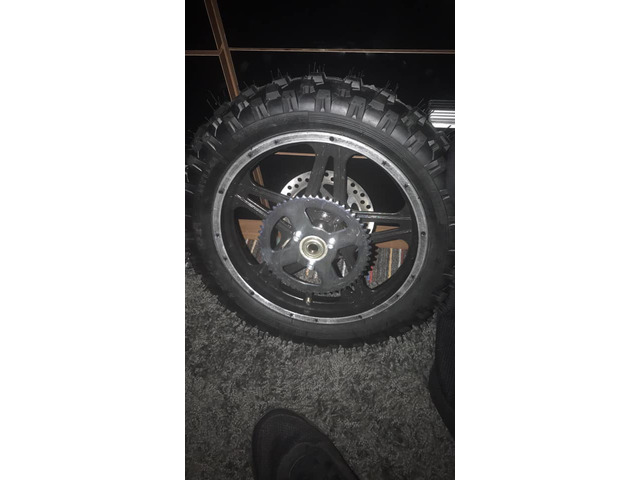 Mini dirt bike non runner new back wheel all needs spark plug n throttle cable would swap for something.