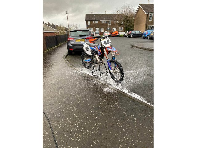 2016 ktm 125sx with 112hrs from new. Had a lot of work done to it recently. At 82hrs rear shock was rebuilt by Russels and new clutch was put in it. At 85 hours engine was done by Davy dickson. Had 4 new gears, new slave cylinder and top end rebuild using vertex piston. Clutch master cylinder was rebuilt today by Norman watts. Clean bike starts first kick hot or cold. Oil changed every 7hrs and filter cleaned and oiled every ride. Front and back tyres 3 rides old.