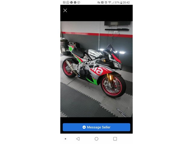 My pristine aprilia rsv4 rf. Top of the range model with 201bhp as standard. Bike has just had a titanium sc project exhaust fitted and re mapped to suit. (Loud) it has been ceramic coated and had paint protection film applied to the front and tank sides to stop stone chips. Fsh. Tft dash with launch control cornering abs. Lap timer. Lean angle reader. Also can use an app with the bike to record your journey, laptimes speeds etc. Im just not using the bike so no point in me keeping it in the garage. Pirelli supercorsa tyres with plenty of life left. Bike is spotless