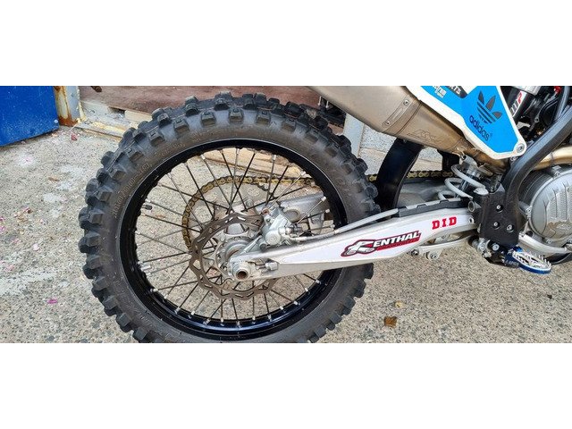 Two complete spare wheels, full set of spare plastics, heavy spring , new gold link chain,new hand grips ,spare radiators ,original exhaust. .comes with two stands and a motor bike lift
