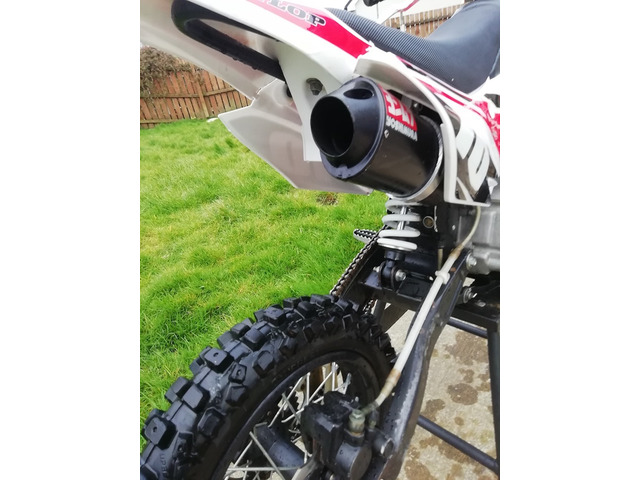 Mint stomp 125. Not your usual scrap. Very well maintained.very fast for a 125. Has had engine work done and clutch lightened. Bike has very little done. Good tyres. New crf style plastics and graphics. Also have a set of revo husquvarna ones as well (last photo) . First to see will buy