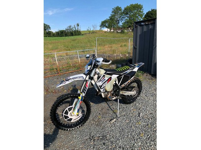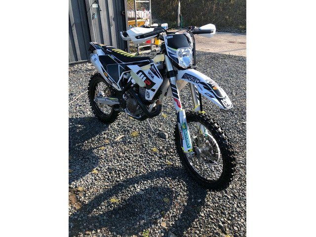 2019 Husqvarna FE350 comes with Traction Control, Map 1 and 2 only 36 hours 559 miles, Enjoy gripper seat recently fitted (also have original Blue seat cover like new) Acerbis White and Black Disk Break Cover, Black Husqvarna Skid plate, Pro Carbon Exhaust Cover just fitted, hand guards, pro taper bars, just fully serviced oil and filters. Very well maintained. Genuine reason for sale moving back to an MX Bike. Not Road Registered but can be done for £100 through HTM, can be organised as part of the sale.