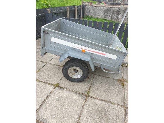 We trailer isn't being used its like brand new pulls very well also tips while still on the car. 5ft by 3 and a half ft